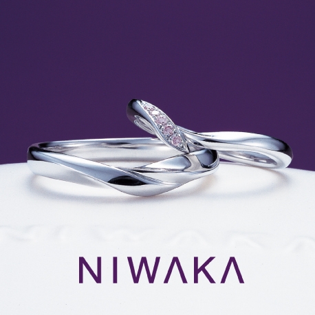 出会った頃の初々しい気持ちを薄紅の桜でイメージした指輪です。ダイアモンドを支える爪で5枚の桜の花びらを、腕で枝葉を表現しています。