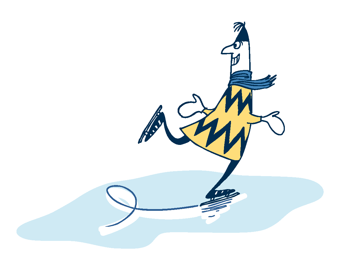 コミックス『やっかいな冬』では、冬眠せずに過ごすムーミン一家が、スポーツ好きのブリスクとウィンタースポーツに挑戦します。
