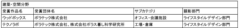ポラスグループ(本社:埼玉県越谷市、代表取締役:中内 晃次郎)の木造施設「ウッドボックス」と、「テクノラボ」が、「ウッドデザイン賞 2025」〈建築・空間分野 ライフスタイルデザイン部門〉を受賞しました。ウッドデザイン賞の受賞は4年連続11回目となります。 「ウッドボックス」と「テクノラボ」は、ポラスグループ最大規模の木造建築の拠点として、2025年3月1日に開設した「ポラステクノシティ」内の施設です。
