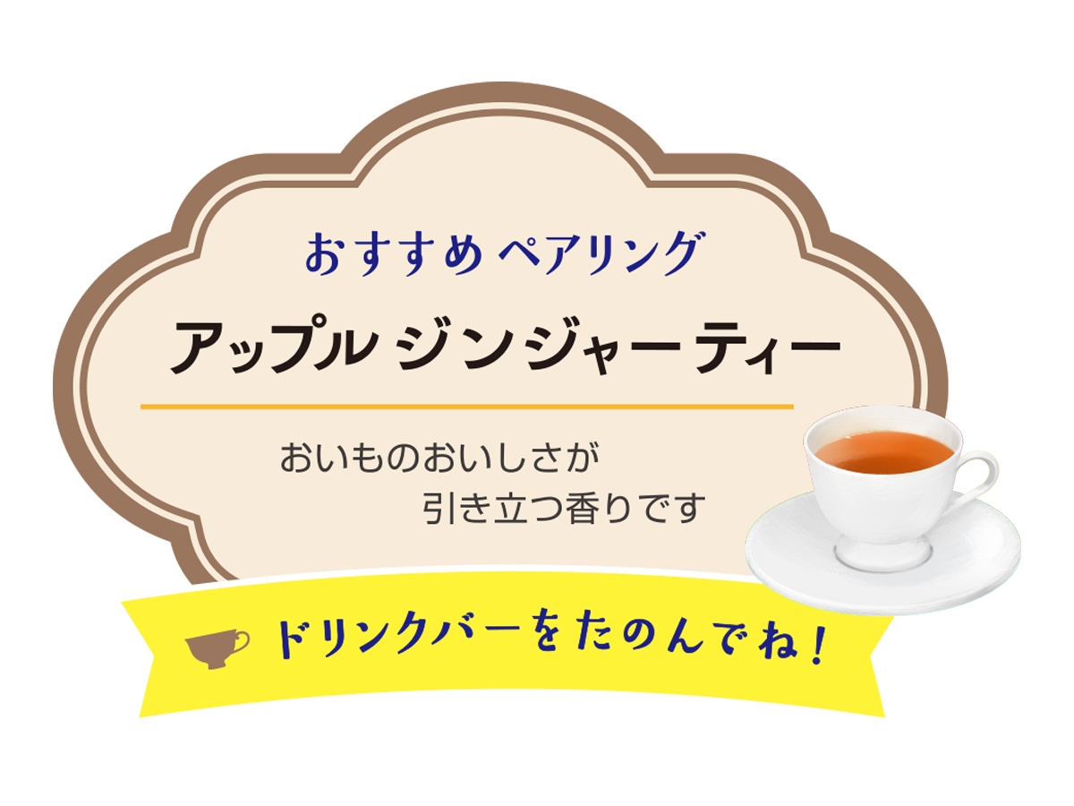 おいもの甘さを引き立てるアップルジンジャーティーとの組み合わせがおすすめです。