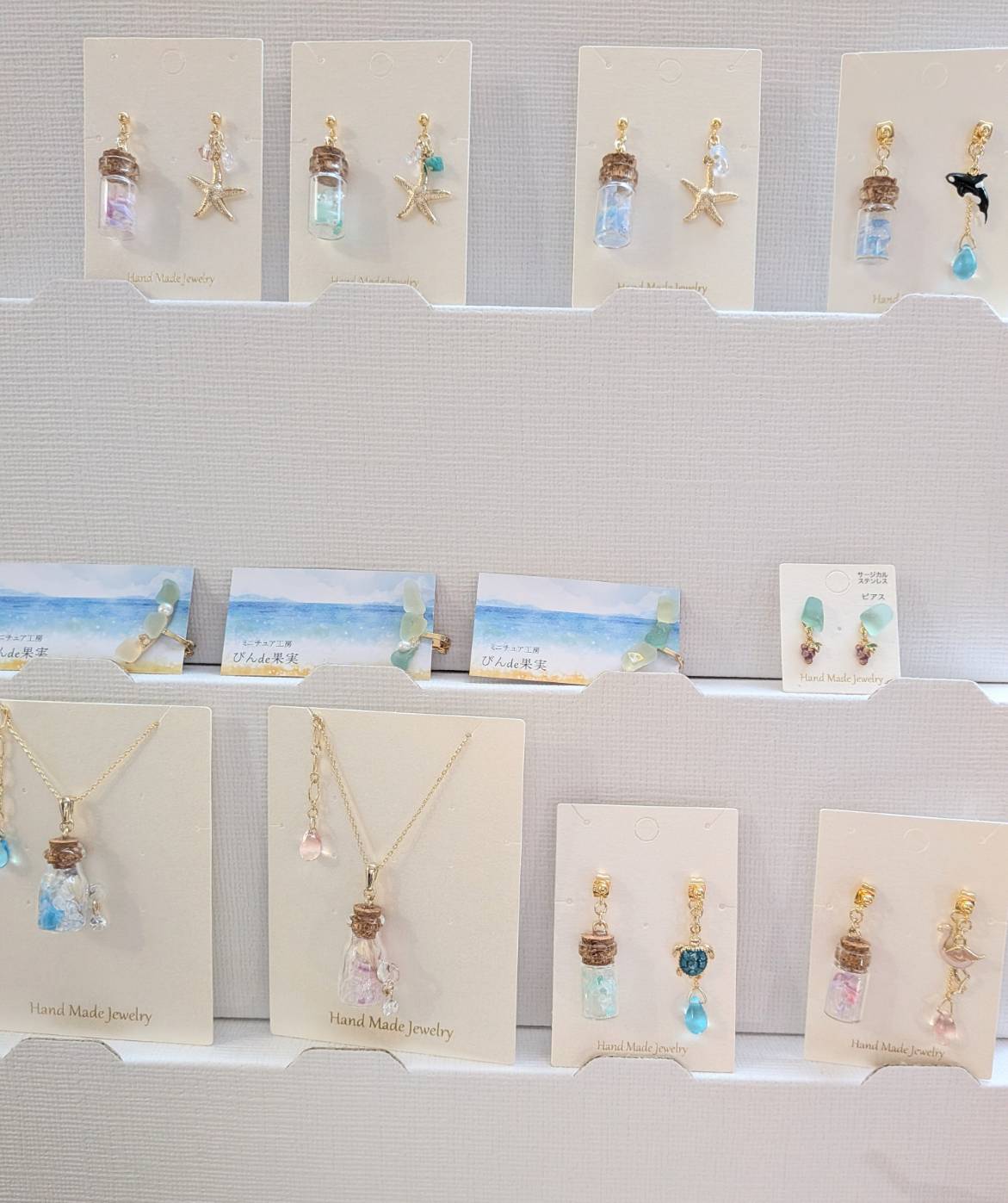 主要素材:シーグラス、回収マイクロプラスチック、水晶(さざれ)、淡水パール、クリスタル、サージカルステンレス ほか