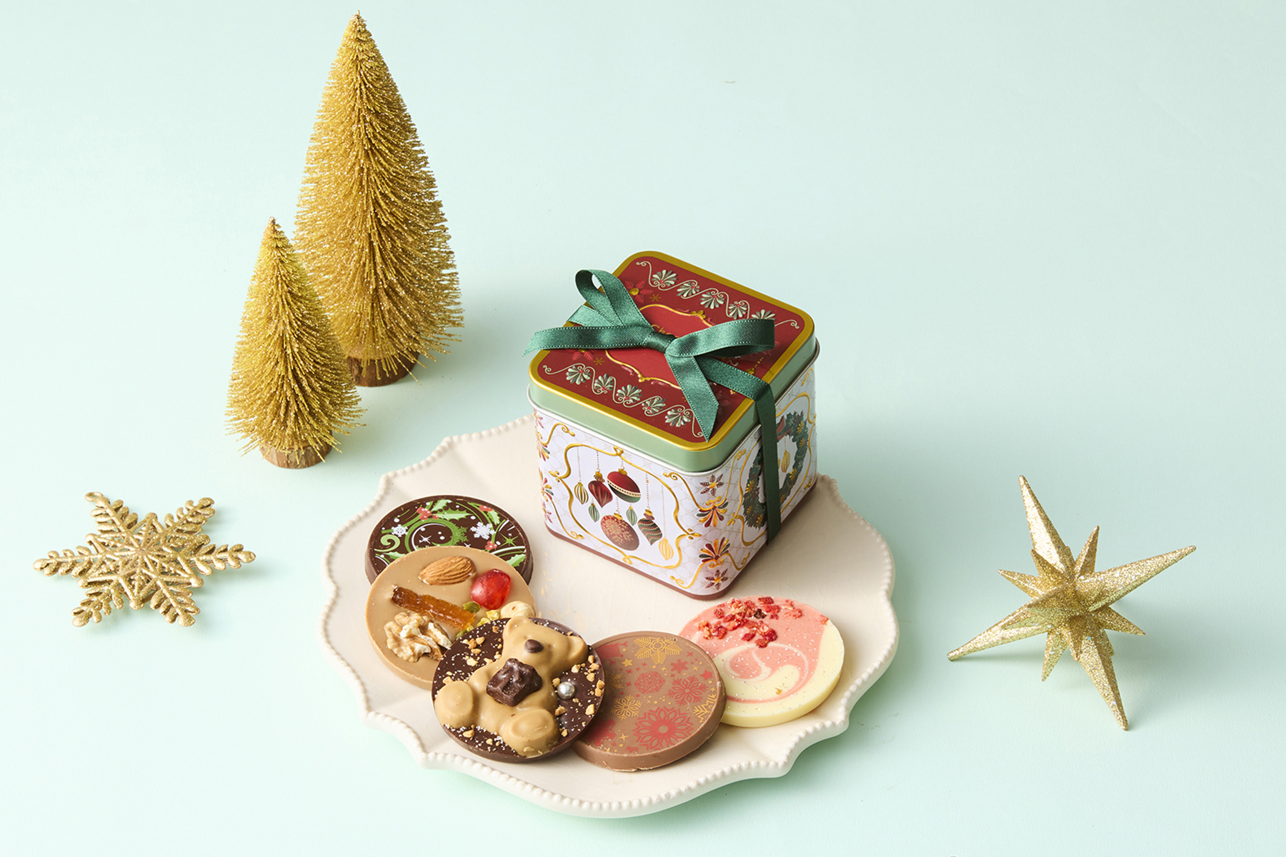 クリスマスの華やかな世界を表現した、パレショコラと焼き菓子の贅沢な詰め合わせ。