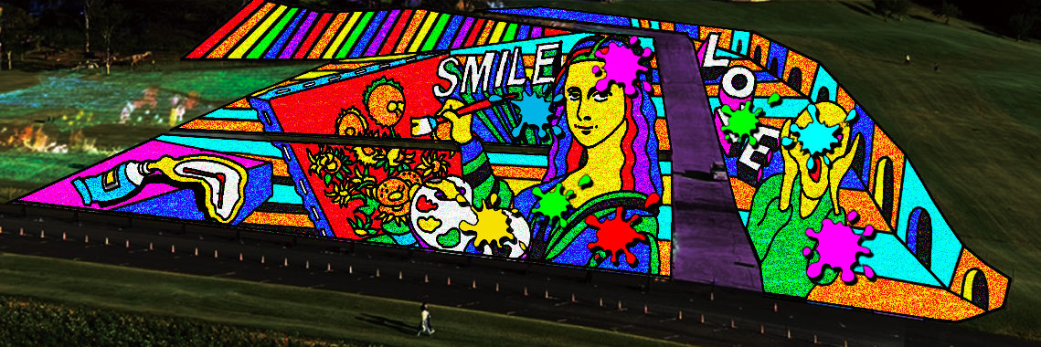 今回の地上絵は、モナリザやムンクなどの有名絵画をポップに構成することで、「芸術をもっと身近に」笑顔(SMILE)と愛(LOVE)にあふれたイメージを演出いたします。