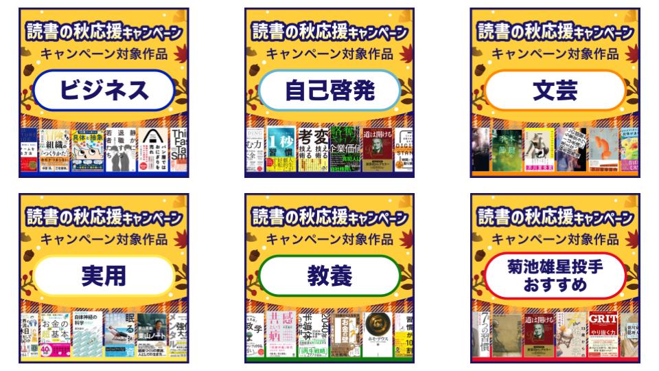 ビジネス・自己啓発・文芸・実用・教養の5ジャンル各50作品、計250作品がキャンペーン対象となります。キャンペーン期間中に対象作品が随時追加されますので、ぜひ特設サイトをご確認ください。