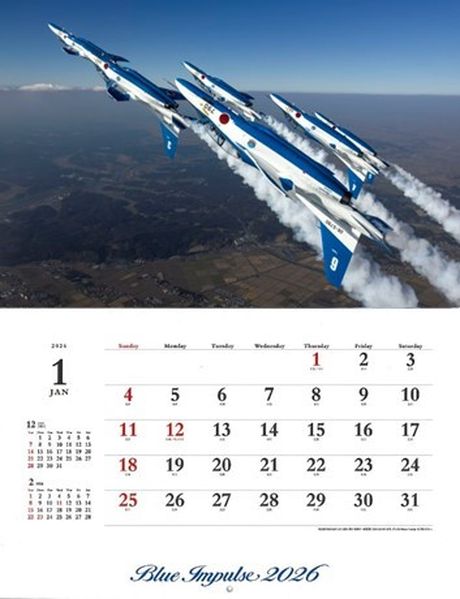 毎年ご好評頂いている航空ファン監修のブルーインパルスカレンダー。航空自衛隊のアクロバットチーム「ブルーインパルス」は、各地の航空ショーや国民的行事で華麗なパフォーマンスを披露し、完成された演技で多くの観衆を魅了しています。本カレンダーは『航空ファン』監修、ブルーインパルス撮影の第一人者であり、オフィシャルフォトを手掛ける黒澤英介氏の撮影によるものです。真ん中(センター)の見開き面にブルーパイロットのサインスペースを設けてあり、裏表紙には各写真の解説とブルーインパルスの歴史を掲載。