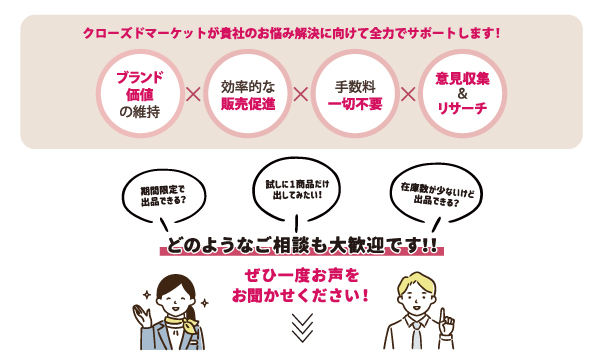 クローズドマーケットが貴社のお悩み解決に向けて全力でサポートします!