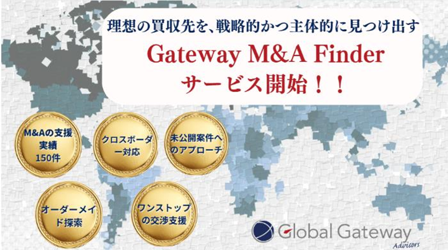 クロスボーダーM&Aにおいて、「戦略に合う相手に出会えない」「公開案件では常に二番手・三番手に回ってしまう」そんな経験をお持ちの企業は少なくありません。情報の非対称性が大きい海外市場では、優良案件ほど早期にクローズされ、公開段階ではすでに主要プレイヤーが動いていることもしばしば。従来のM&A情報収集だけでは、自社の戦略に本当にフィットするターゲットに出会うのは容易ではありません。こうした課題を解決するのが、Global Gateway Advisors(GGA)が提供する新サービス「Gateway M&A Finder」です。このサービスは、買い手企業の戦略に精緻に合致する買収・提携候補を戦略的かつ主体的に発掘することを目的としています。2025年8月の本格始動以降、すでに20件を超えるお問い合わせをいただき、ご活用いただいています。