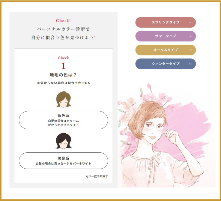 ビジョンメガネ独自のパーソナルカラー診断は、当社ホームページ上でも受けることが可能です。