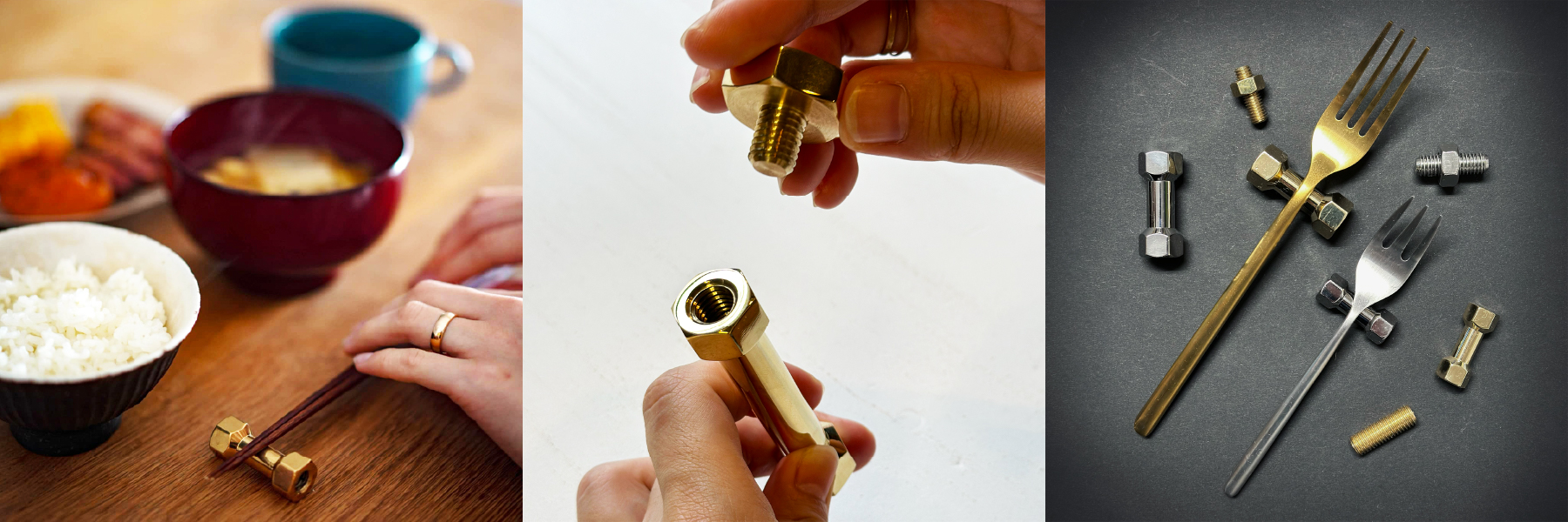 無垢の金属を削り出し、磨き上げて仕上げており、部品のかたちはそのままに、日々の暮らしを彩る『暮らしを豊かにする部品のあり方』の提案です。