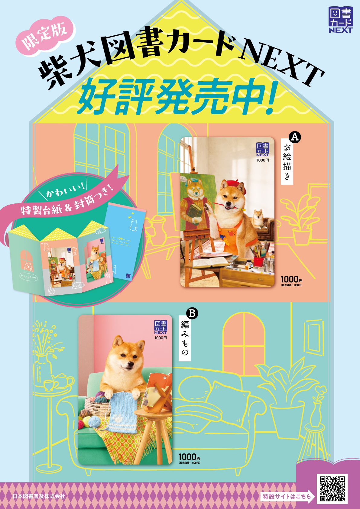 “本の贈りもの”図書カードNEXTは柴犬シリーズの図書カードNEXTを10月16日(木)より発売します。本と一緒に思い思いの時間を過ごす柴犬が可愛いと、毎回ご好評をいただいている製作枚数限定の図書カードです。