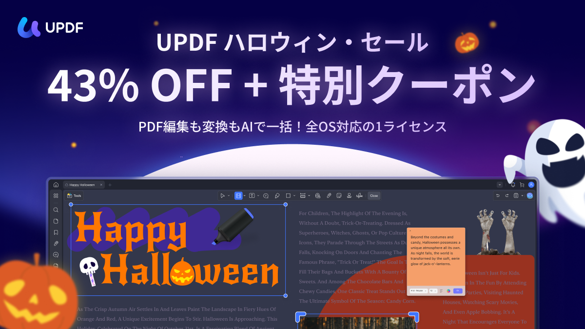 UPDF、「Halloween Sale」キャンペーン開催 — 驚きの割引でPDF作業効率をスマートにアップ!