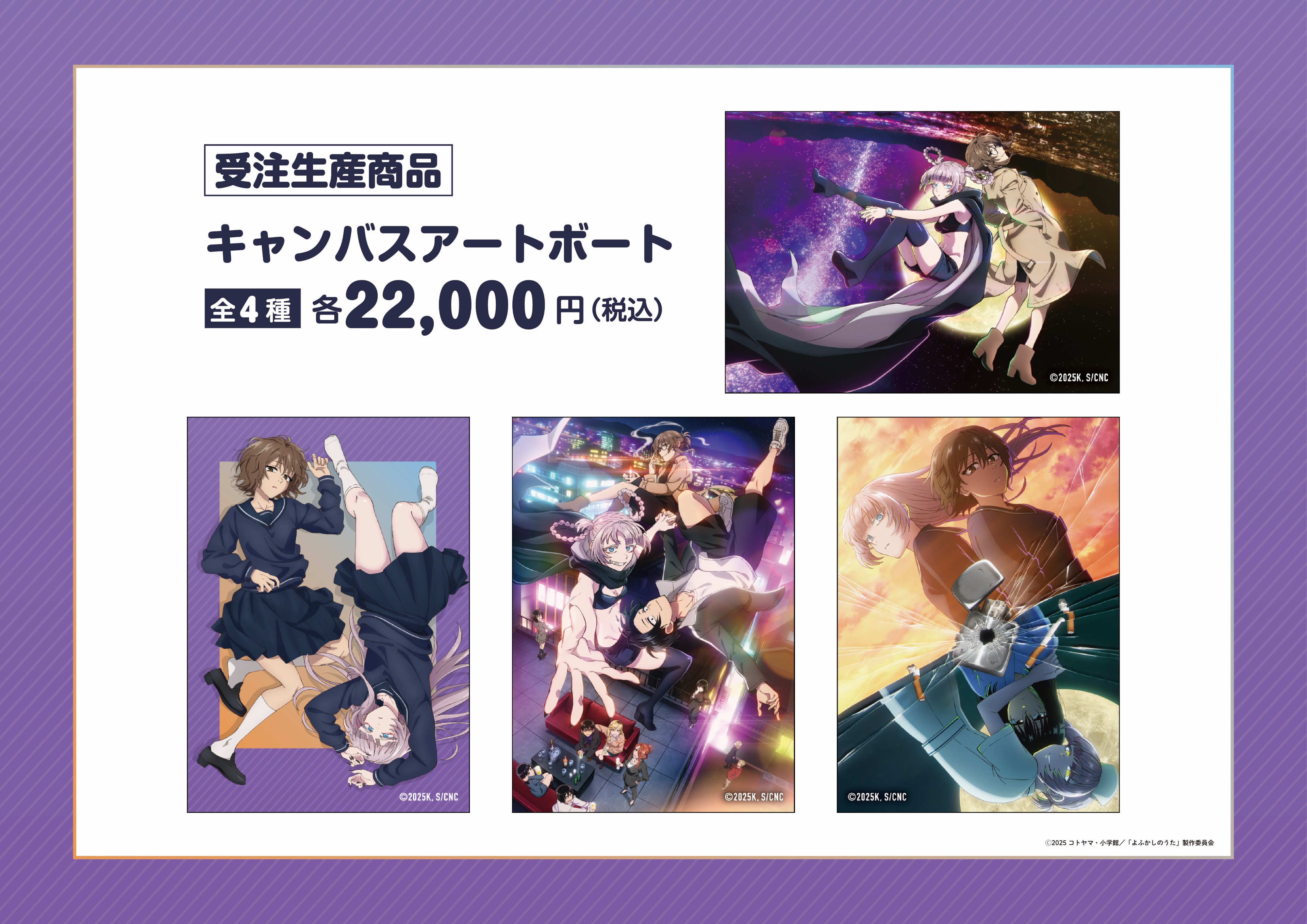 TVアニメ「よふかしのうた Season2」で描かれた“ナズナとキョウコの最初の出会い”をモチーフに描き下ろした新作ビジュアルのオリジナルグッズを販売します。本会場以降も順次各地で開催を予定しています。