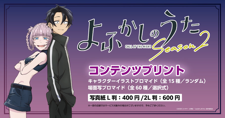全国のコンビニエンスストアのマルチコピー機にて「よふかしのうた season2」の「コンテンツプリント」を販売します。