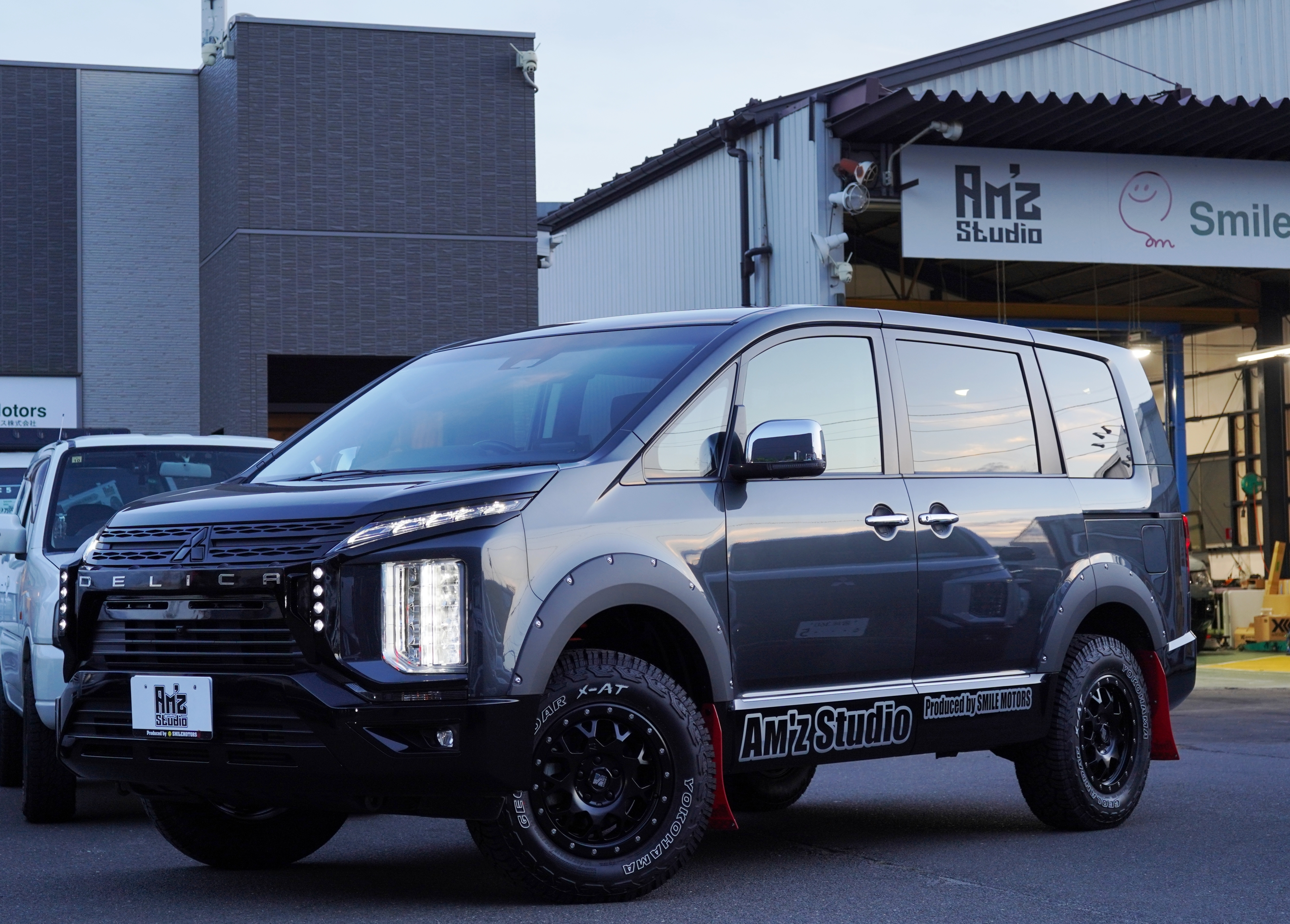 「Am’z Studio(アムズスタジオ)」は、デリカとデリカミニを専門にカスタムするブランドです。複数ブランドのパーツを組み合わせたり、オリジナルカラーを施したりとディーラーとは一味違う車両を製作し、全国へ納車しています。ファミリー層からアウトドア好きまで、多くの方の遊び心を走らせることをモットーに新しいパッケージ商品も開発しています。