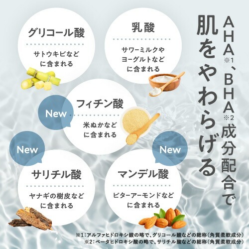 AHA(*3)を2%配合…グリコール酸、乳酸、マンデル酸、フィチン酸の合計