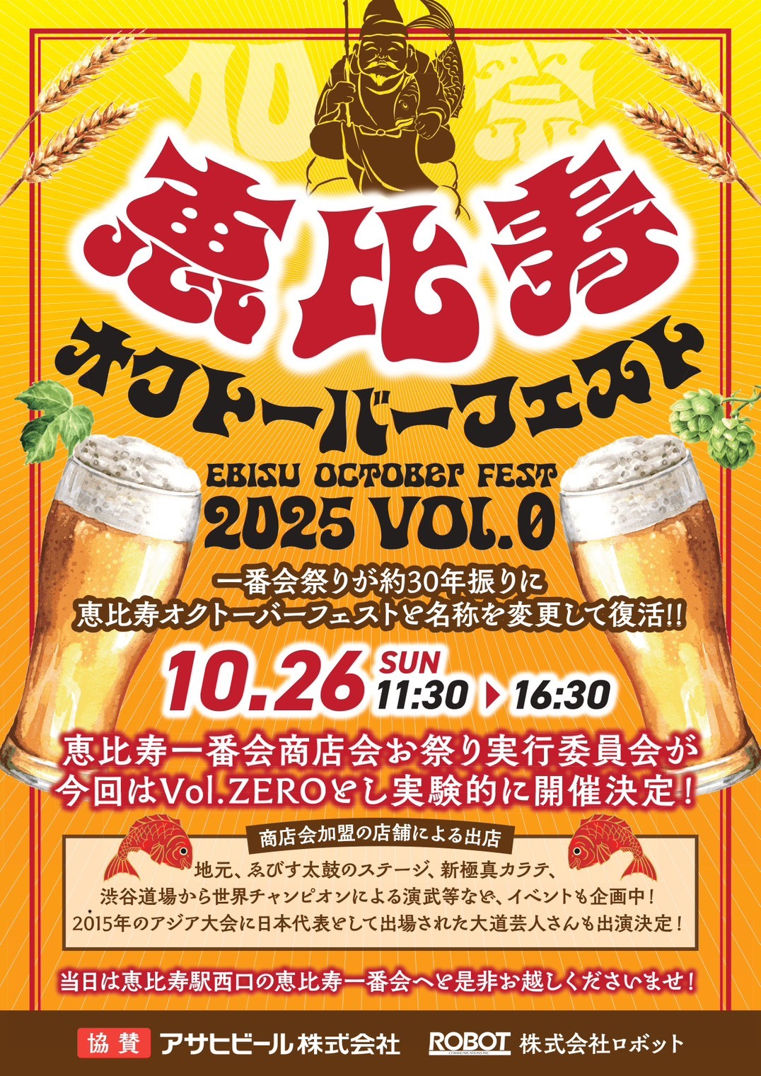 恵比寿の街に、約30年ぶりの大イベントが帰ってきます。「恵比寿オクトーバーフェスト2025 VOL.0」が、2025年10月26日(日) 11:30〜16:30、恵比寿駅西口周辺で開催されます。今回のテーマは「Vol.ZERO」――本格開催に向けた“実験的プレイベント“として、地元商店街・飲食店・パフォーマーが一体となり、秋の恵比寿を盛り上げます。