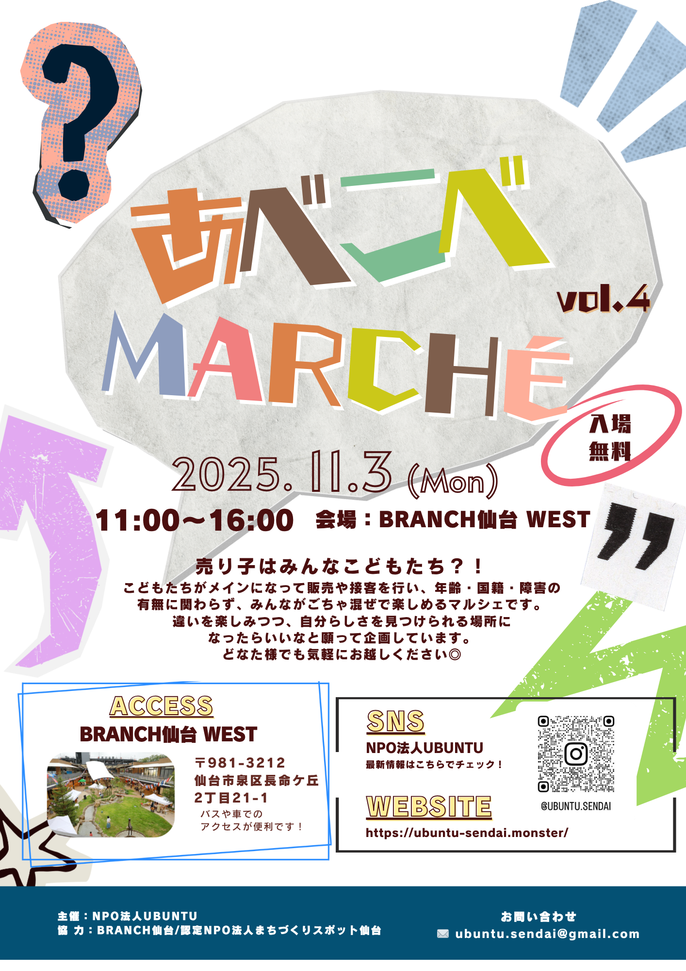 2025.11.3(月㊗)11:00-16:00 「あべこべマルシェVol.4」in BRANCH仙台を開催!!