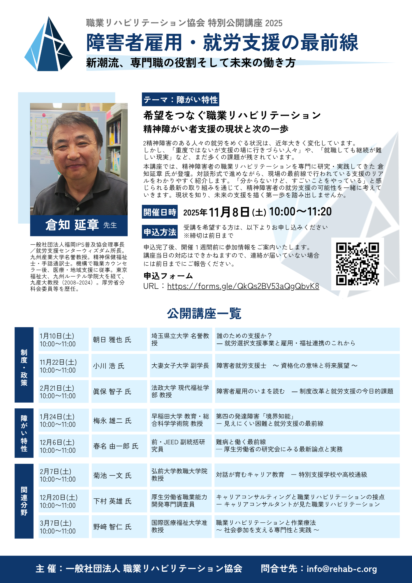 名 称:職業リハビリテーション協会「特別公開講座2025」《第1回》