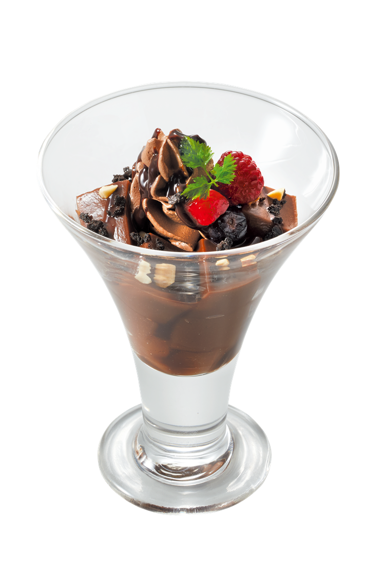 なめらかなチョコプリンにナッツとクッキークランチを添えて、食感のアクセントと濃厚さが絶妙にマッチ。