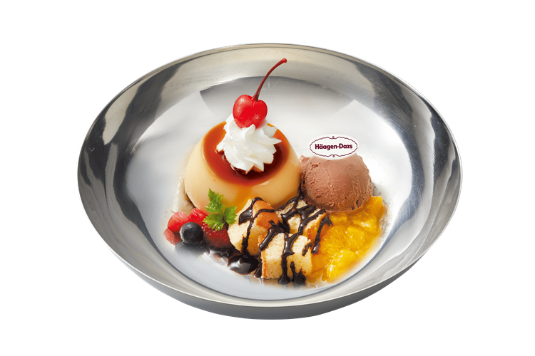 さとこだわりの店仕込みプリンと、まろやかで優しい甘さのチョコアイスが楽しめます。