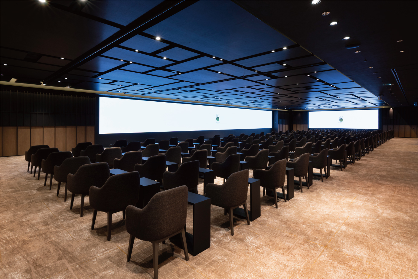 ・会場 :562㎡/収容人数 スクール 140名、シアター 322名(サイドテーブル付き 189名)