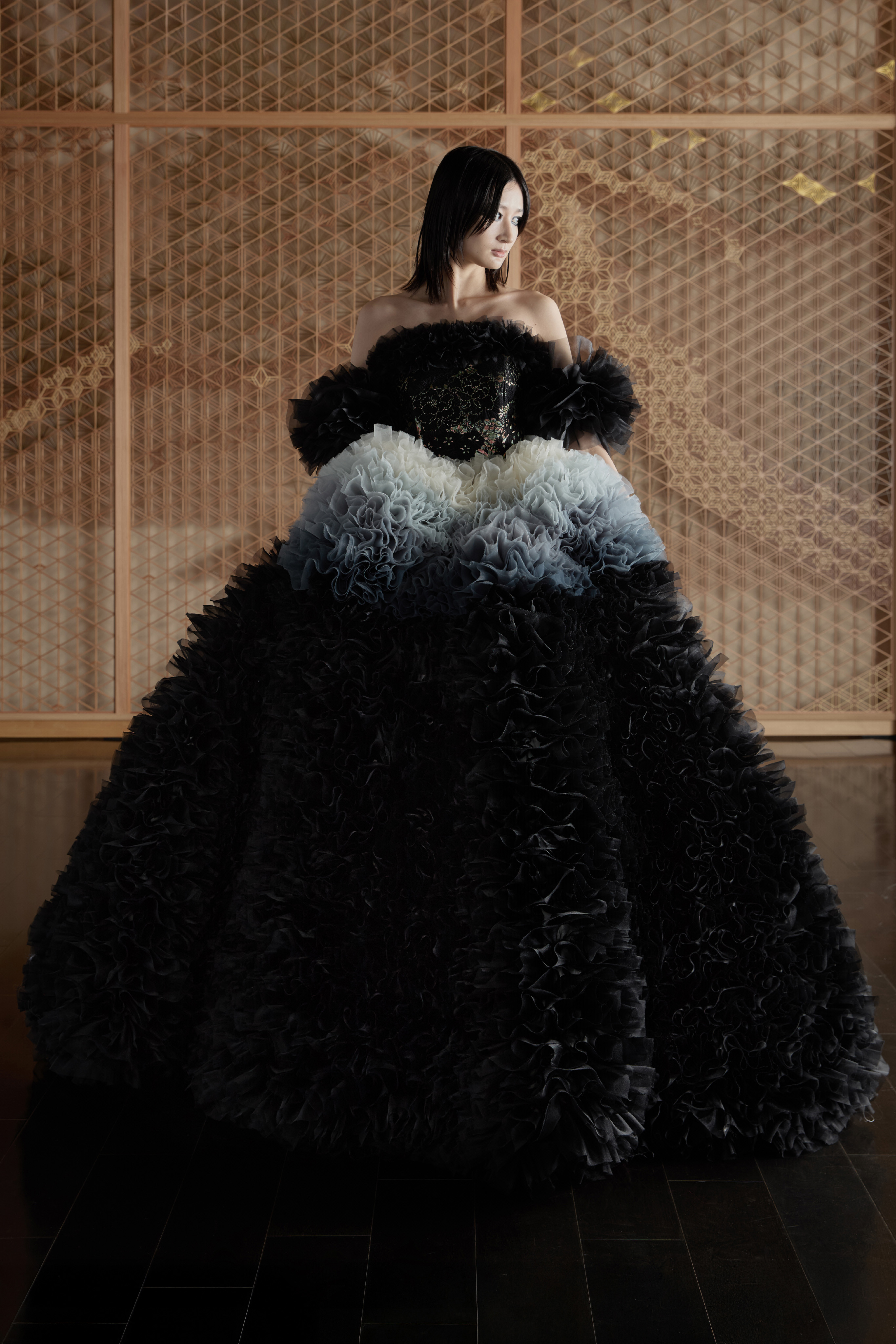 白から黒へ、滑らかなグラデーションフリルが可憐な「KOKU」。