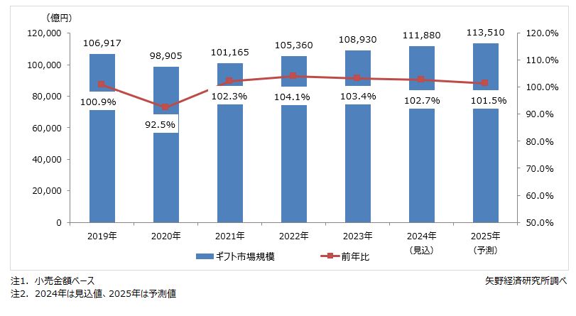 国内ギフト市場規模推移と予測(図1)