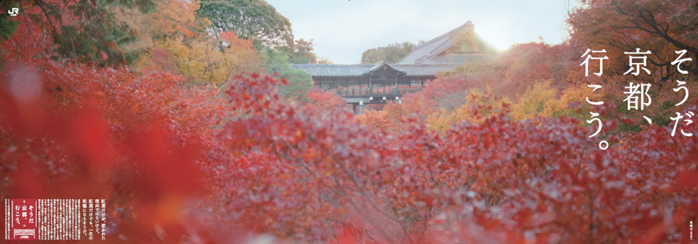 「そうだ 京都、行こう。」2025年秋のキャンペーンの舞台である「東福寺」の圧倒的な紅葉のグラフィックを大型ボードで展示。東京駅を利用される多くの方々に、京都の秋の旅情を感じていただきます。