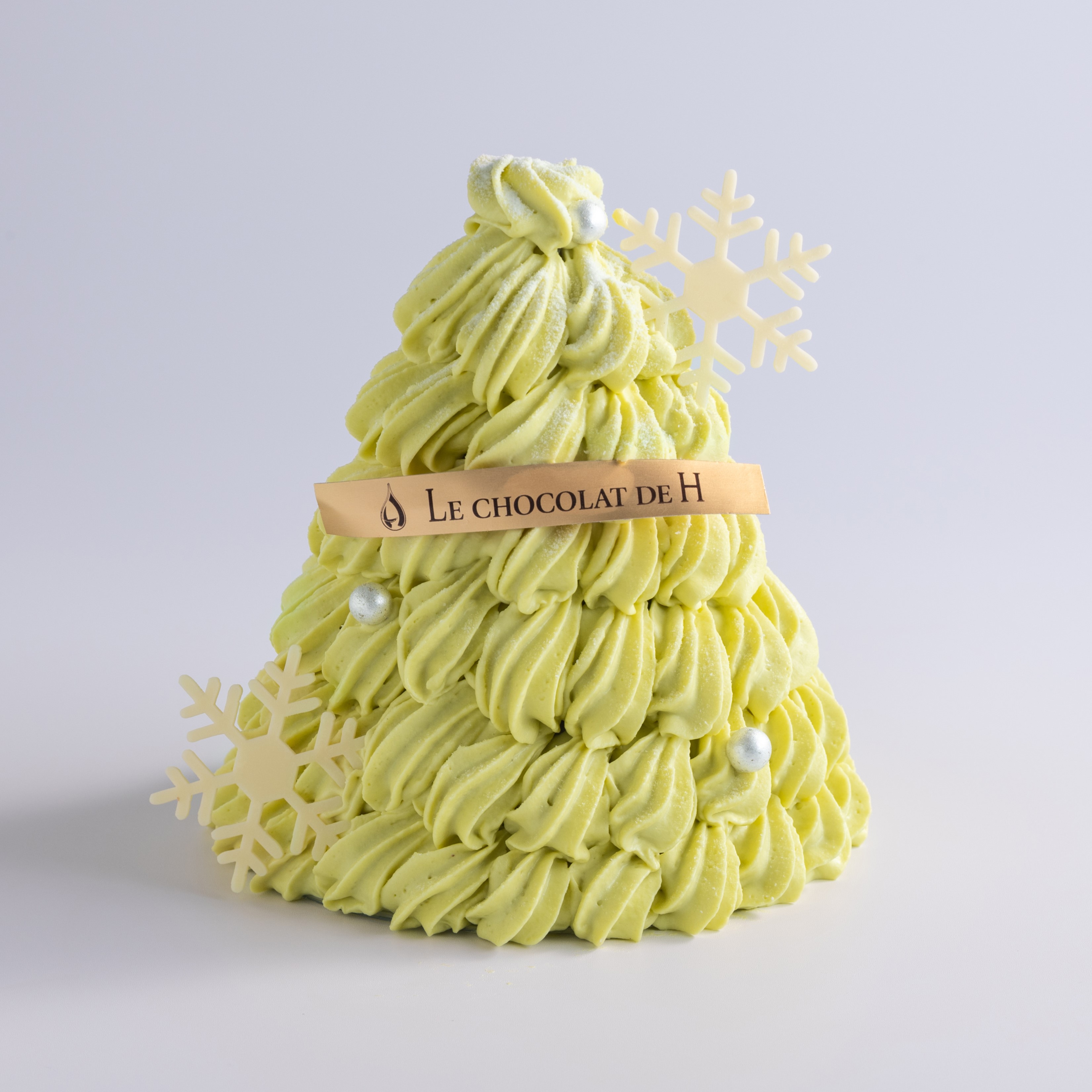 奥深い味わいのショコラと芳醇なピスタチオのコクが織りなすクリスマスツリーの形をしたケーキ。