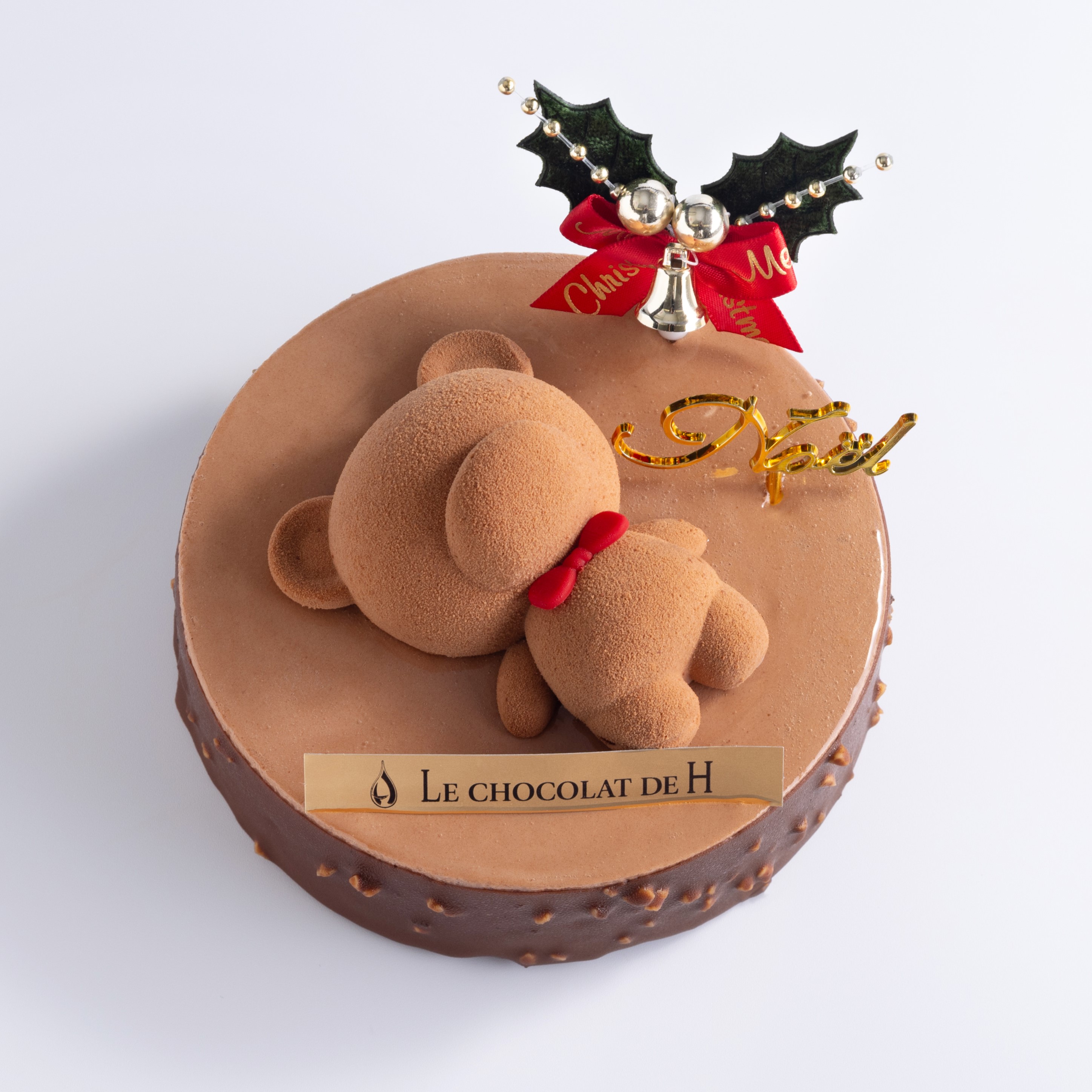 くまのサンタをのせたかわいいケーキ。3種のショコラをブレンドし、ふわっと軽やなショコラムースのクリスマスケーキ。