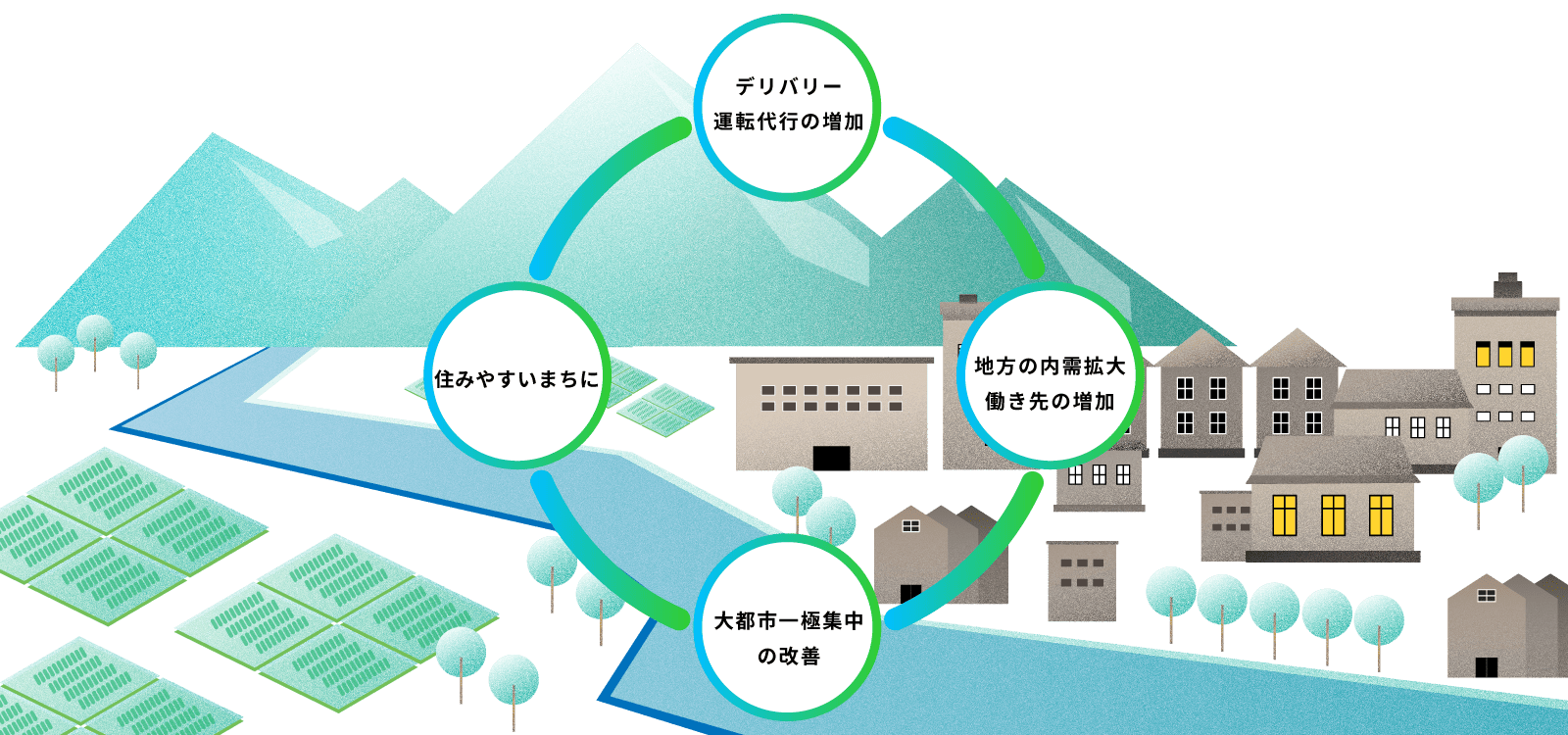 地方で慢性的に不足している「運転代行サービス」や「宅配デリバリー」を補いながら、飲食店の新たな収益源となる仕組みを構築しました。
