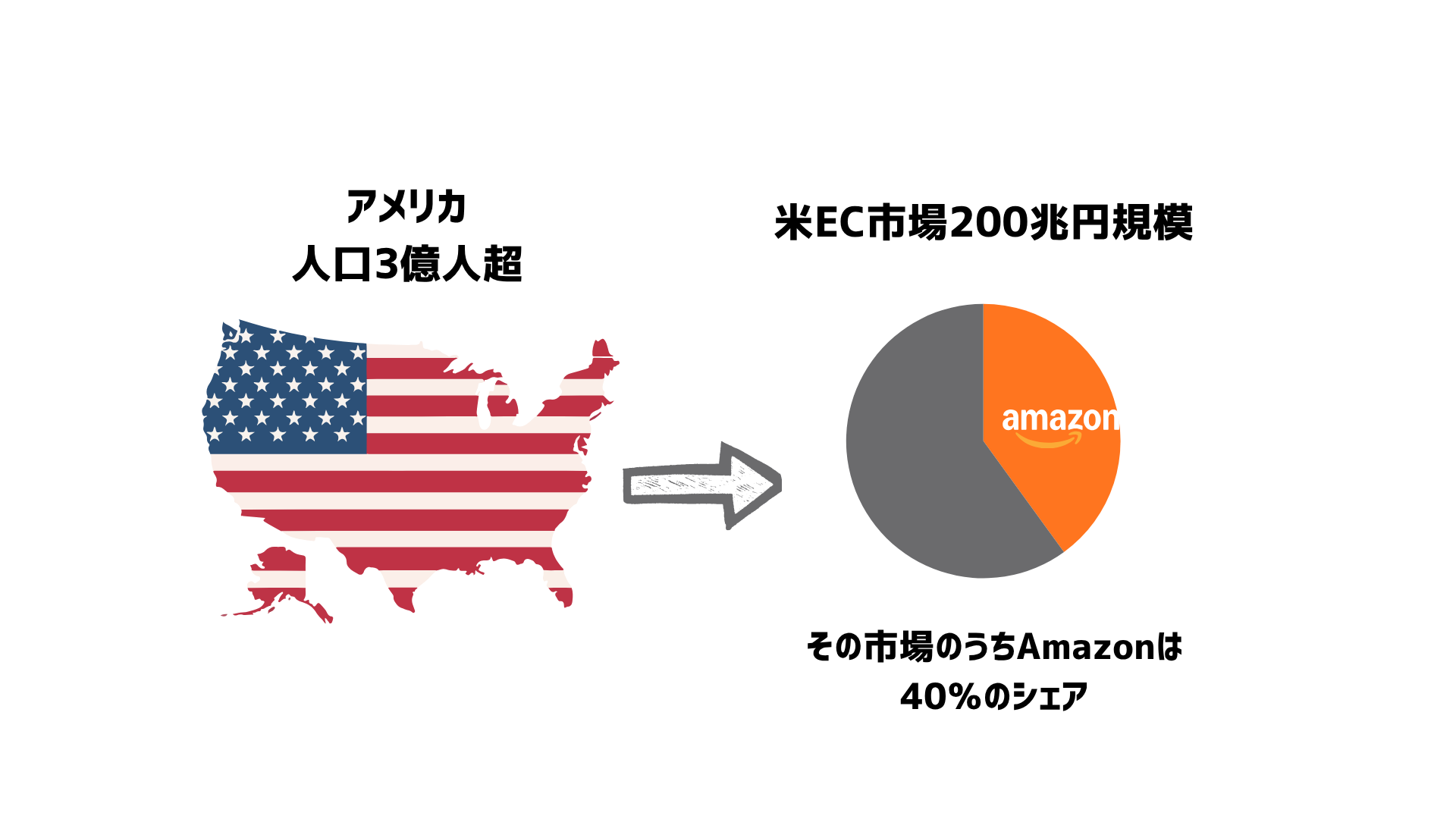 アメリカは人口3億人を超える世界最大の消費市場であり、そのEC市場規模は200兆円を突破、日本の約20兆円と比べて10倍以上の大きさを誇ります。