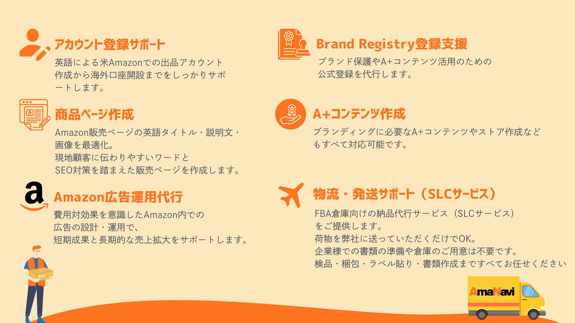 AmaNaviは、米Amazon進出をゼロから支援するトータルサービスです。