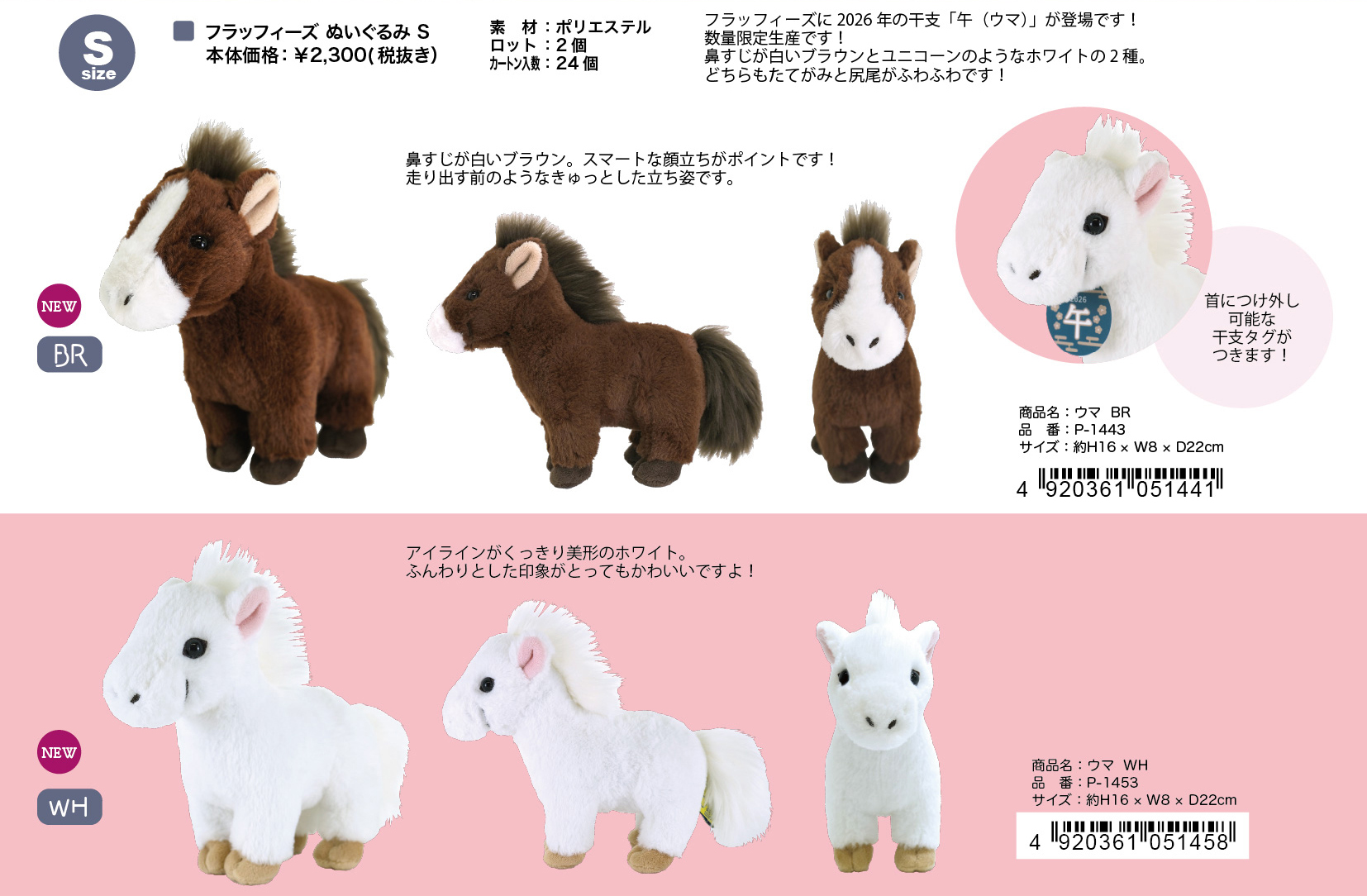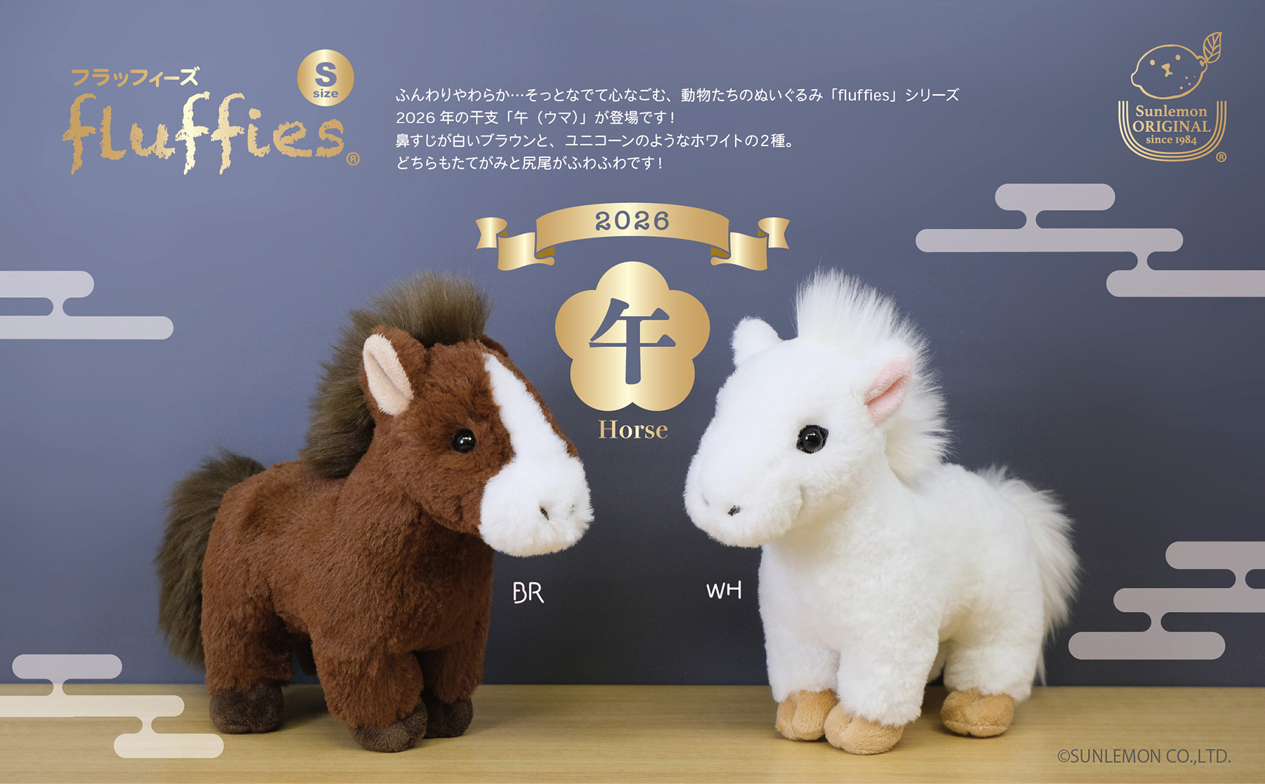 ふんわりやわらか…そっとなでて心なごむ、動物たちのぬいぐるみフラッフィーズシリーズ。 2026年の干支の「午(ウマ)」が10月中旬に発売 いたしました!