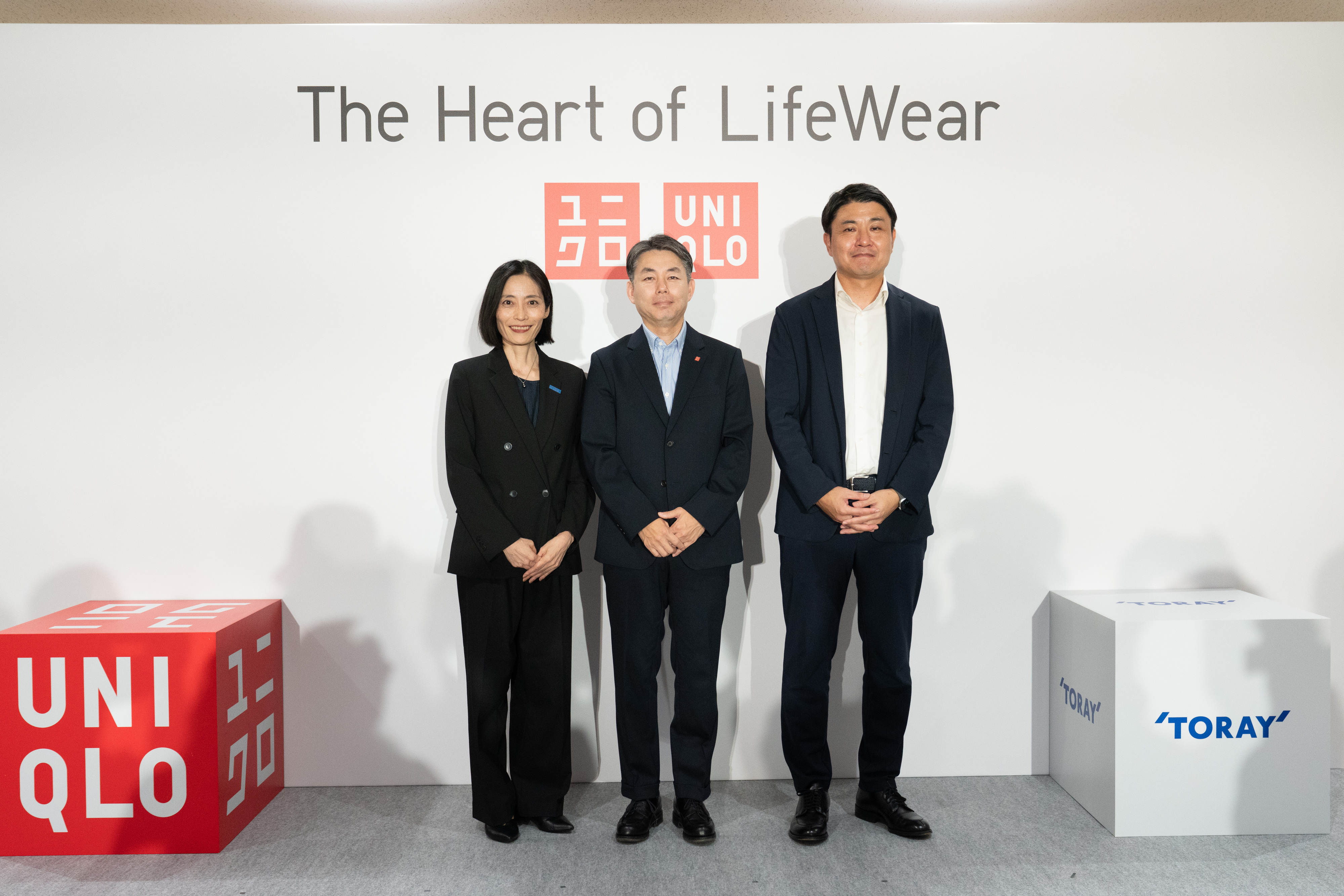 続いて、東レ株式会社 GO事業部長の大川 倫央氏から、The Heart of Lifewear活動に2億円を寄付し、ユニクロと協働し本活動を進めていくことが発表されました。今後は、ヒートテックが生産されている国内外の拠点地域でも、The Heart of LifeWearの活動や発信をユニクロと共に行い、両社のものづくりを支えてくれている地域の方々に感謝の気持も伝えていきたいと語りました。