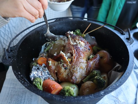 ダッチオーブンで豪快な野外料理体験!「ローストチキン作り」