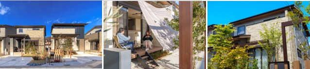 外部環境を取り入れながら快適に暮らせる住環境を目指した全19棟の分譲住宅です。年々深刻化する夏の異常な暑さに着目し、風を取り込む窓計画・中間領域の設計・緑化計画をコンセプトに街並みを設計しました。室内外の両方で緑や風といった自然を感じられる住まいとすることで、街並み全体が心地よく、家族が健やかに育つ家づくりを目指しました。