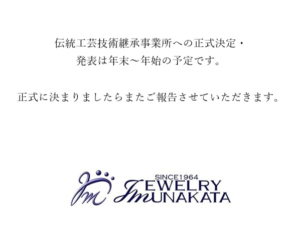 予てよりさいたま市にて審査が進んでおりました当店のジュエリー作りの技術が「さいたま市の伝統産業並びに伝統的な工芸技術を継承する事業所」認定へ向けて、前進の件が伝えられました。