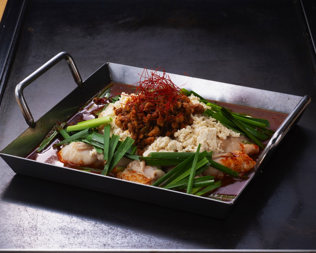 ピリッと効いた旨辛麻婆ダレと白モツでお酒が進む逸品。締めにはご飯を入れて麻婆雑炊にするのもおすすめ。