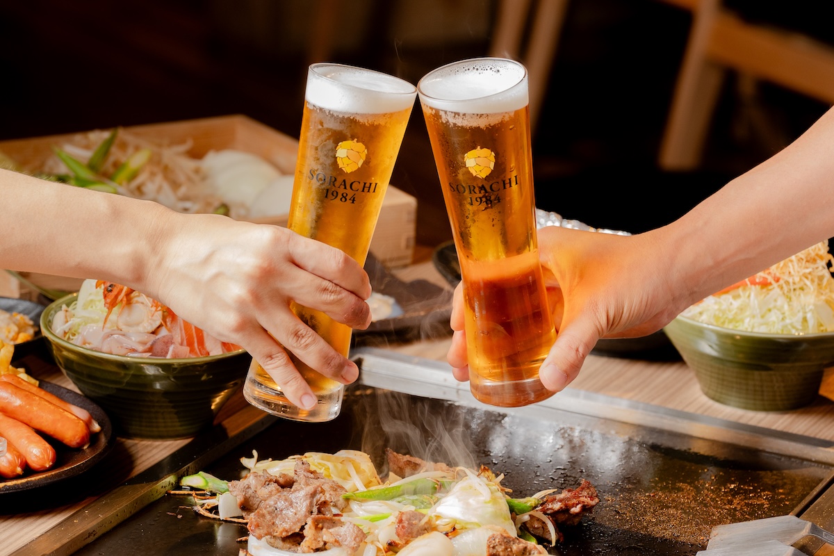 北海道の美食を世界に発信するため、新スタイルのレストラン×ビアホールとして新しい体験をご提供しております。創業50年の北海道ダイニング監修のもと、東京発祥のB級グルメを道産食材でアレンジした「北海もんじゃ」、北海道産和牛とたっぷり野菜の豪快「鉄板焼き」が2大看板メニュー。