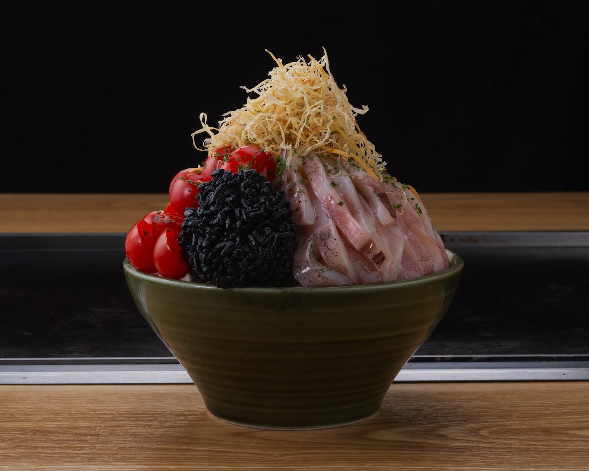 スペイン料理を思わせる濃厚な海の香りと、鉄板で香ばしく焼けるイカの食感がクセになる一皿です。