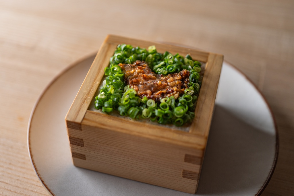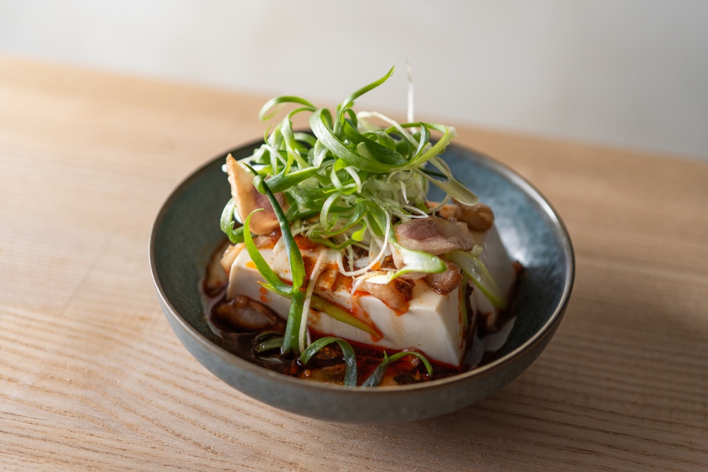 九条葱と鶏皮の冷奴 ー辛ー 480円