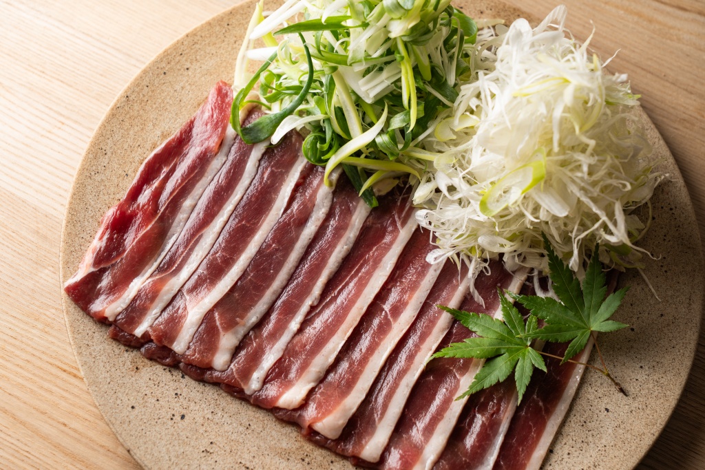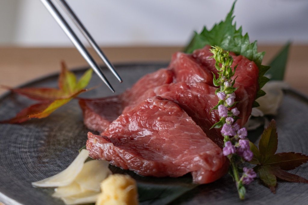 こちらは鴨と同じ東北の地を故郷とする、青森県「小田桐産業」の馬肉をご用意。