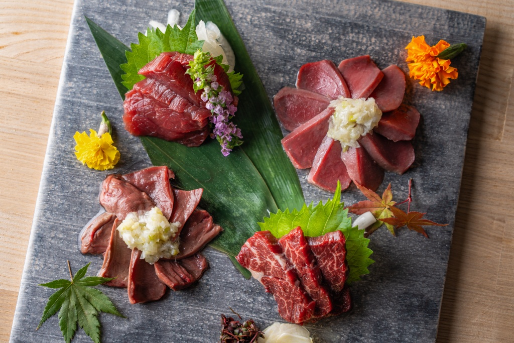 名物の登場を待つ間、もう一つの看板食材"ときどき馬"こと馬肉がおもてなしいたします。