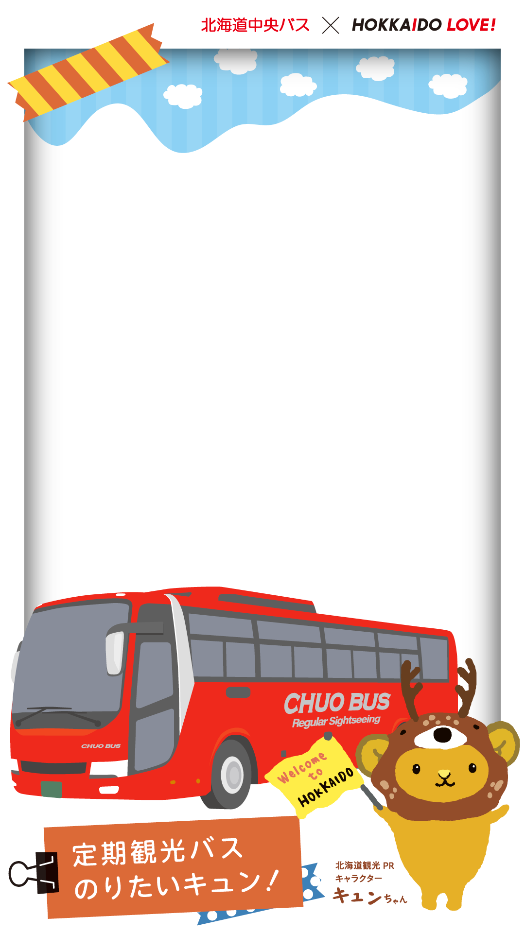 あわせて、フォトフレームを使って撮影した写真をハッシュタグ「#定期観光バスのりたいキュン」をつけてSNS(X、またはInstagram)に投稿することで、抽選で北海道土産の詰め合わせと定期観光バスのペア乗車権が当たるキャンぺーンも実施します。