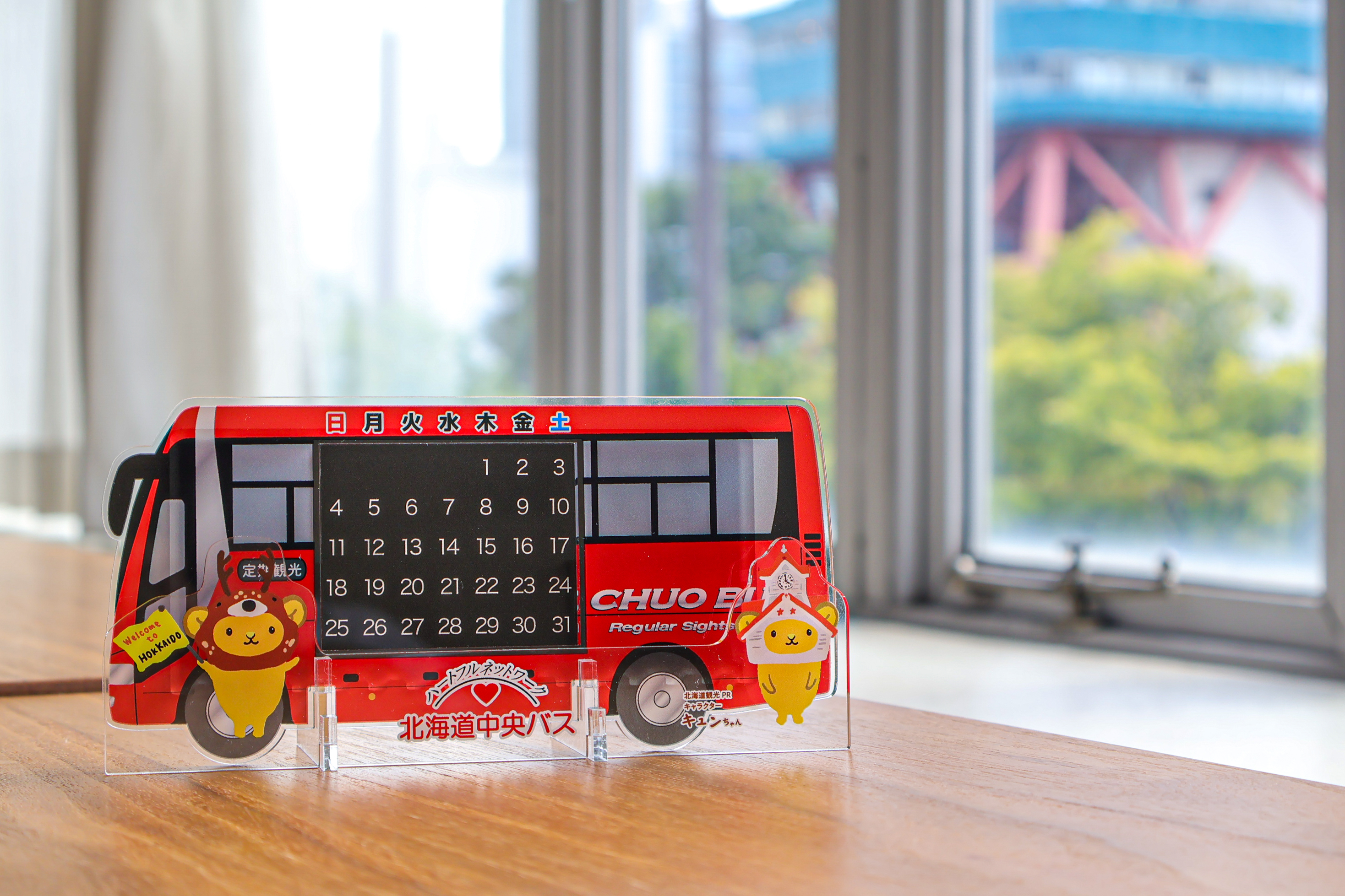 今回のデジタルスタンプラリーイベントは、10月15日に発売した北海道中央バス・定期観光バスオリジナルグッズ「キュンちゃんコラボ アクリル万年カレンダー」でのコラボを記念したものです。