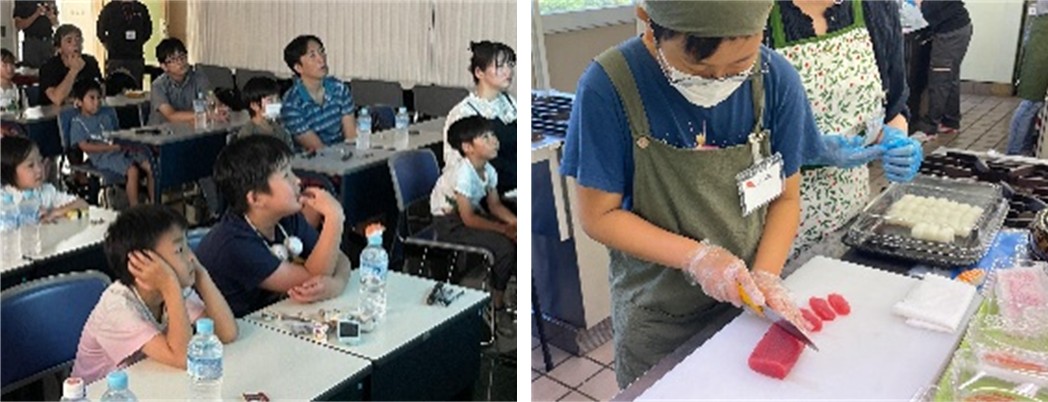 毎年、夏休みの親子を対象とした、「夏休み大企画 ~夏だ!寿司だ!親子でお寿司作り体験!~」を開催しています。魚について学ぶだけでなく、自分でネタを切り、お寿司を握って食べて、片付けをするまでを体験する食育プログラムです。同プログラムを通じて、子どもたちに「知る楽しみ」「作る喜び」を感じてもらいながら魚食文化の拡大を目指しています。