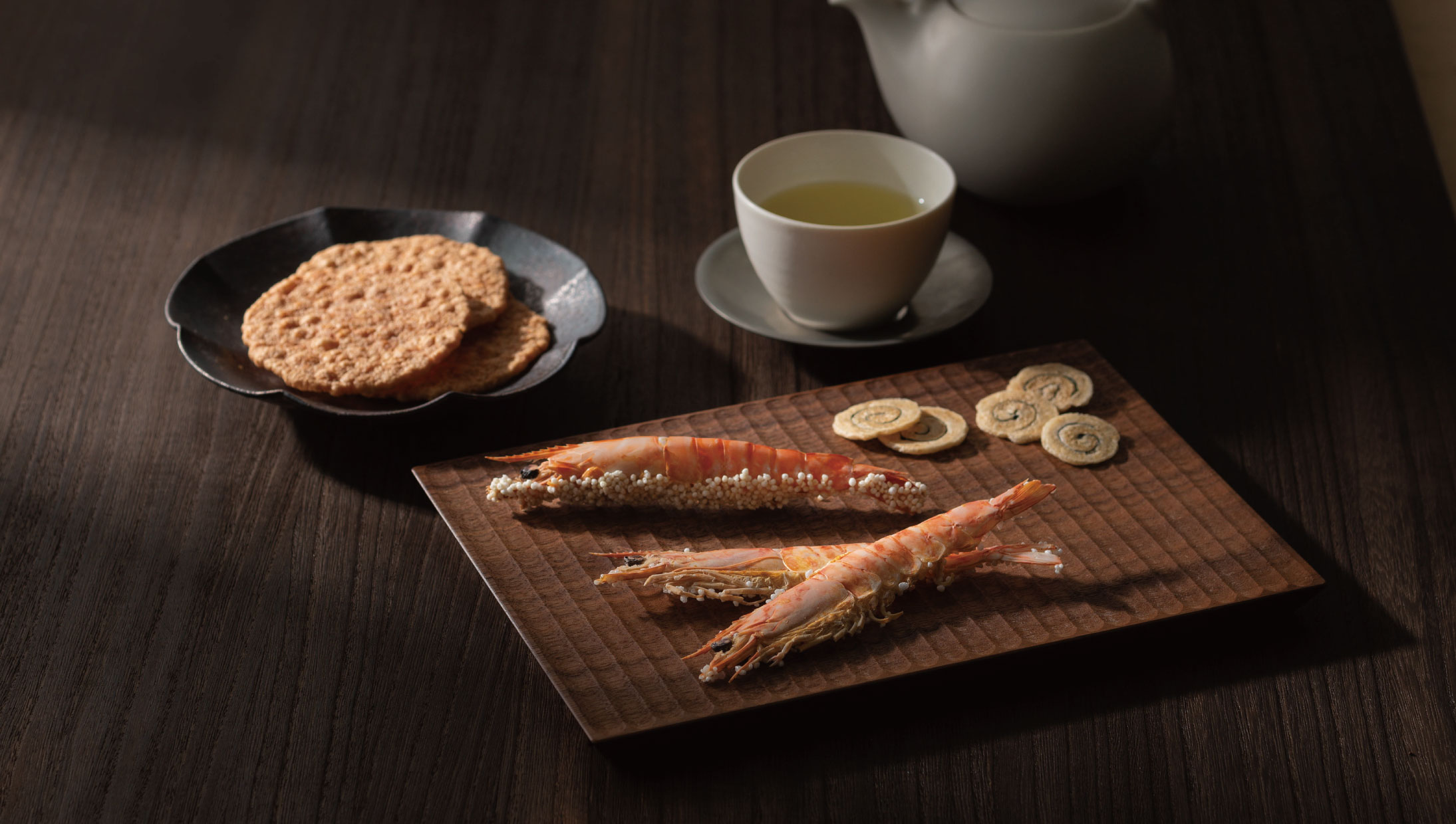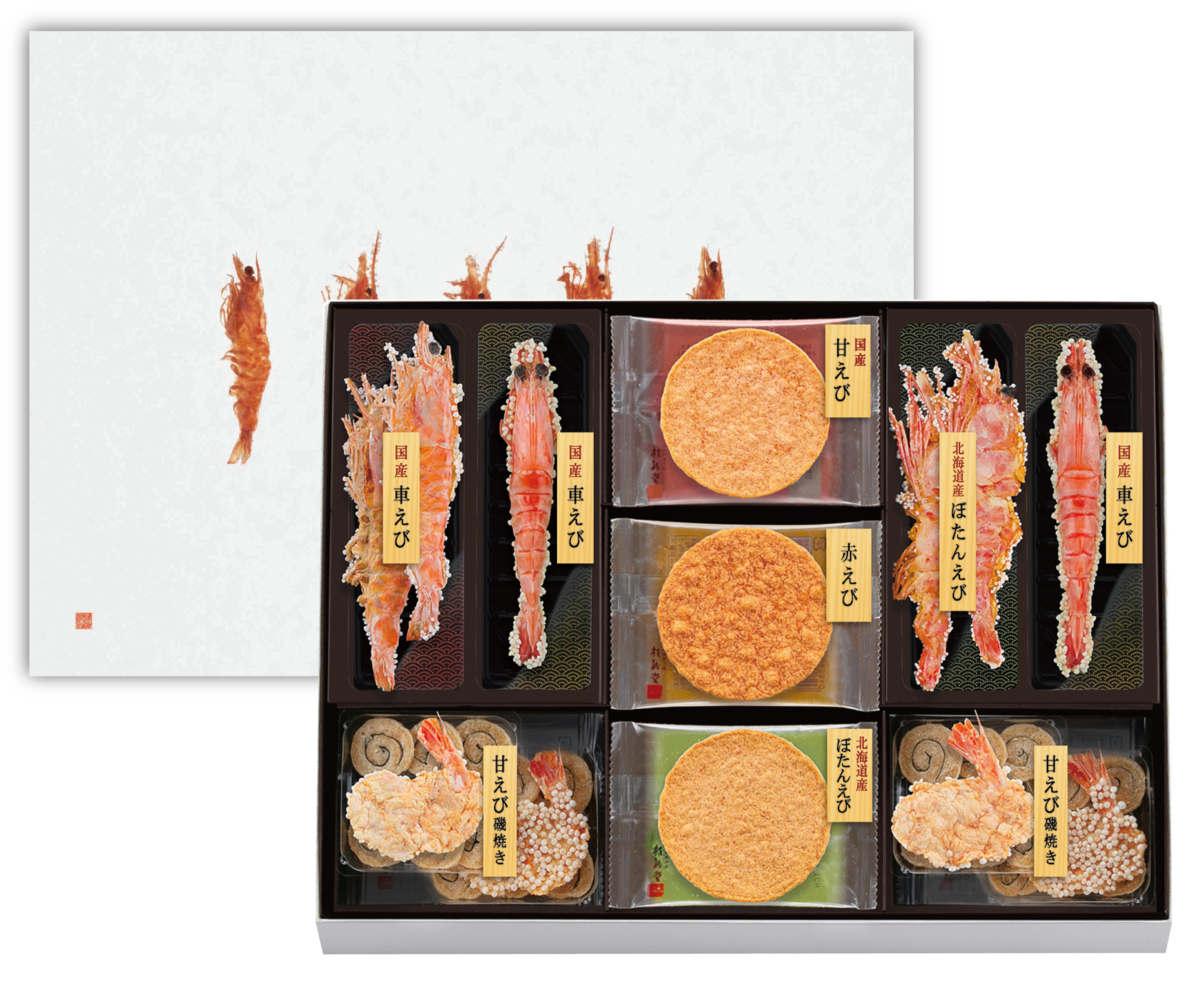 国産の車えび・甘えび・ぼたんえびなどを独自の製法で焼き上げました。