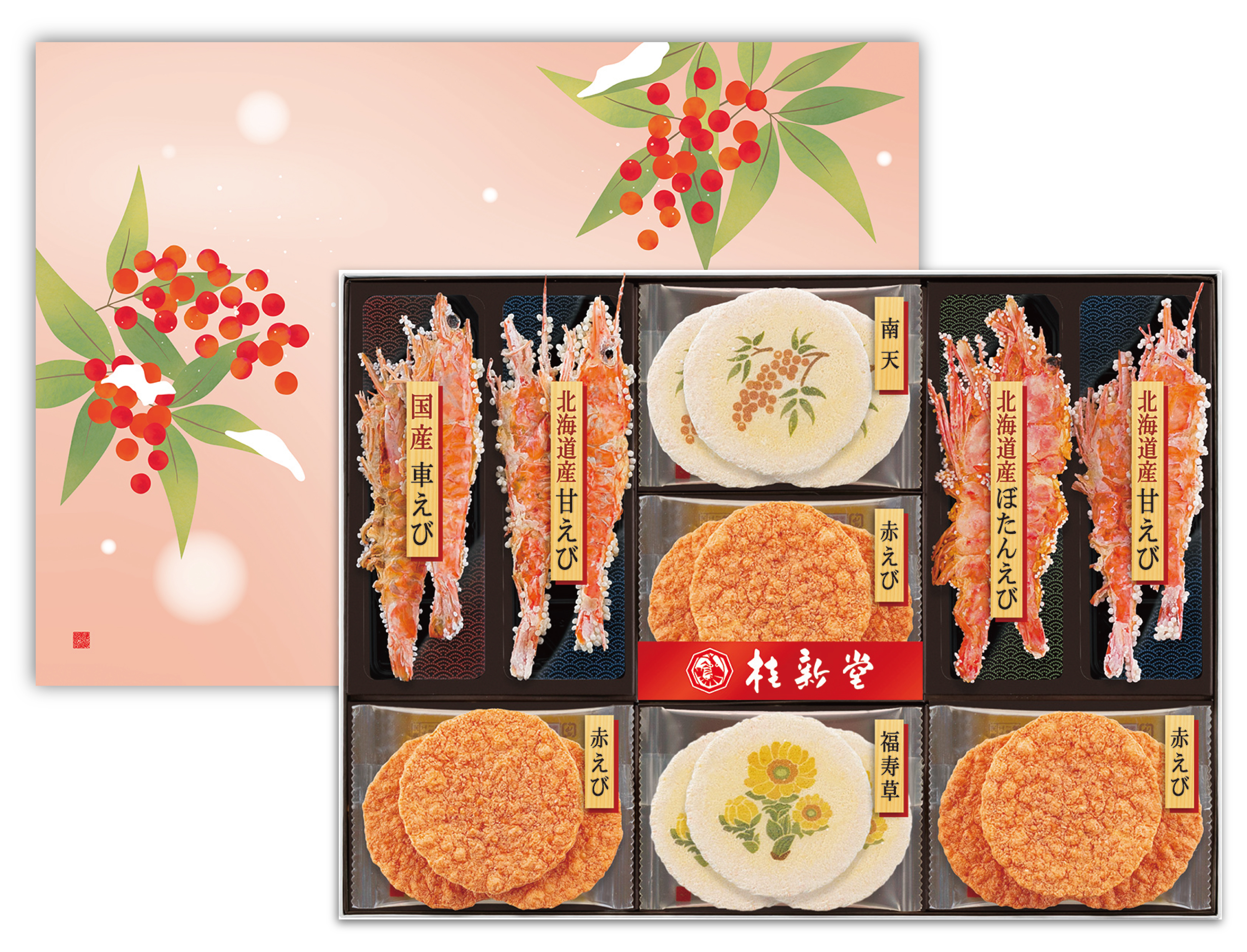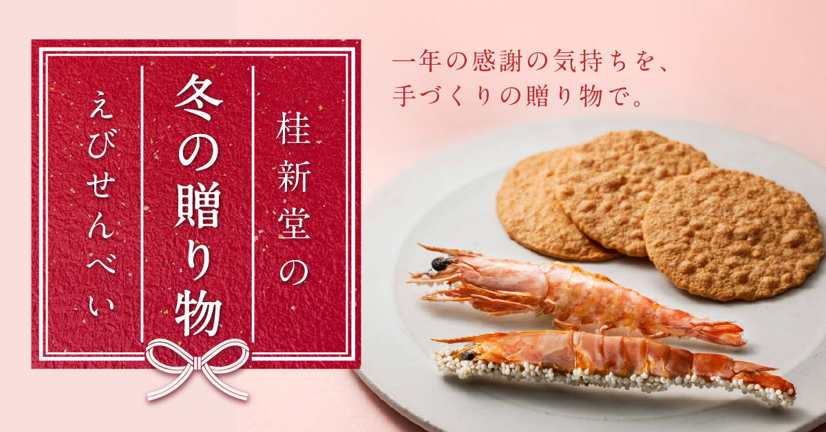 桂新堂株式会社(本社:名古屋市中区金山1-14-18 A-PLACE金山5階、代表取締役:光田侑司)は、見た目も華やかなえびの姿焼きと縁起の良い絵柄のえびせんべいを詰め合わせた限定商品『冬のえび物語』をはじめとした、多様なラインナップの冬の贈り物をご用意しました。