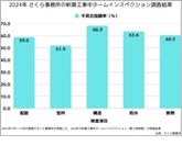 設計上いくら高断熱であっても、しっかりとした施工が伴っていなければ性能は十分に発揮できない。2024年にさくら事務所が実施した新築工事中ホームインスペクションでは、60%以上の住宅で断熱に関する何らかの不具合が指摘された。断熱の基本は「家の断面を見たとき、断熱材を結んだ線が一筆書きできる」こと。しかし、実際には断熱材の欠損などが少なからず見られるのが現状。